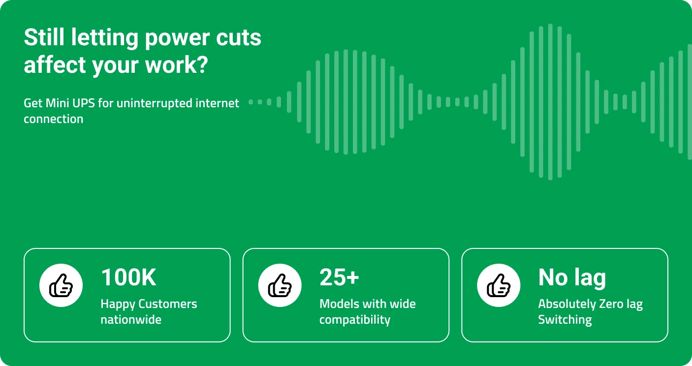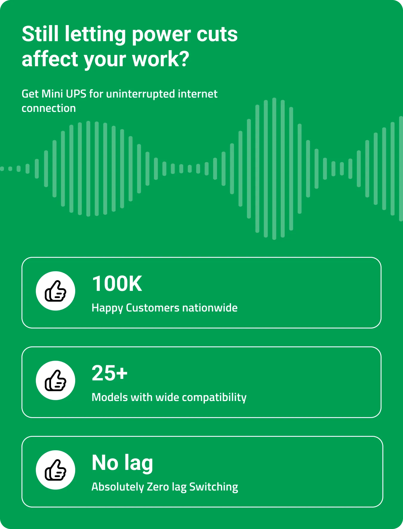 EXCELLENT Based on 60 reviews Nurture-Exports2025-09-08Trustindex verifies that the original source of the review is Google. Fantastic equipment very happy to have it. Perfect technology. Binesh G2025-09-07Trustindex verifies that the original source of the review is Google. One of the best mini ups for jio air fiber, it has a back up time upto 4hrs. I was using cruzor mini ups for Kerala vision broadband. For jio air fiber starwatt is the best and perfect mini ups. Umar Farooq2025-09-01Trustindex verifies that the original source of the review is Google. Very Nice Product, Giving Good Backup. Had Some issue with the Adapter but they immediately solved the issue. Good customer support. Sasidharan Vellat2025-08-25Trustindex verifies that the original source of the review is Google. Very satisfied so far. No unwanted beeping. Smooth operation Neetu Tyagi2025-08-23Trustindex verifies that the original source of the review is Google. Bought Mini UPS for Wi-Fi Router from starwatt. excellent product, it can handle 3-4hrs powercut easily Sanjay S2025-08-19Trustindex verifies that the original source of the review is Google. Starwatt Mini UPS is a reliable backup solution that ensures your devices stay powered during outages. Its compact design and efficient performance make it a must-have for uninterrupted connectivity. Venkat S2025-08-18Trustindex verifies that the original source of the review is Google. Subasish Mula2025-08-11Trustindex verifies that the original source of the review is Google. Good T. Srinivasa Murthy2025-08-10Trustindex verifies that the original source of the review is Google. Verified by TrustindexTrustindex verified badge is the Universal Symbol of Trust. Only the greatest companies can get the verified badge who has a review score above 4.5, based on customer reviews over the past 12 months. Read more